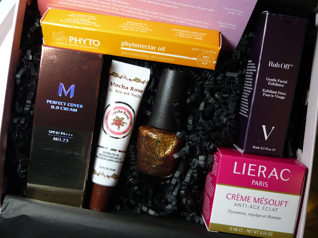 Holy cow, this is the box that I've been waiting for since August! Dubbed "The Hit Kit" by Refinery29, it is filled with "elite" skincare products handpicked by their senior beauty editor, Megan McIntyre. Definitely a box full of sophisticated products. It also includes a surprise product, a very shimmery gold OPI nail polish from the limited edition James Bond collection from OPI.